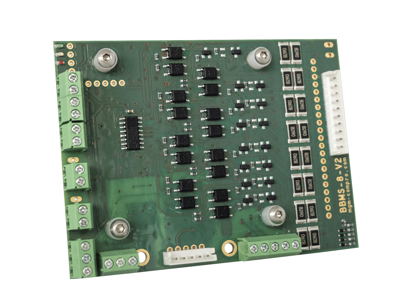The BMS 8i is a battery management system designed for use with LiPol, Li-Ion and LiFePO4 cells, as well as other cells with an operational voltage range of 1.8V to 5V per cell. The BMS 8i protects the batteries and extends their lifetime by measuring their operational temperatures, capacity, and analysing the voltage together with current flow measuring. The BMS 8i controls the energy storage system during charging and discharging cycles. Manages the balancing of each cell, monitors thermal behaviour, communicates with a superior system and contorol system relay and contactors. The BMS 8i can operate with a maximum of 8 cells in series. For higher operational voltages, it needs to be connected to a larger system via the internal bus RS485, where a limitation of up to 8× BMS 8i modules (1× MASTER/7× SLAVEs) applies, leading to a system configuration of up to 64 cells connected in series with a maximum energy storage system operational voltage of 270 V.