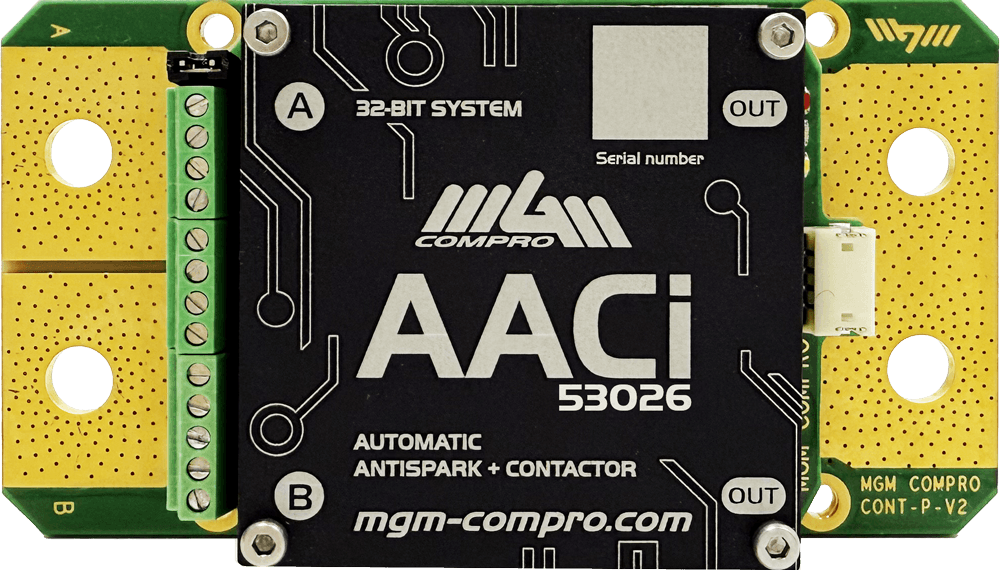 AACi modules are designed exclusively for the power connection/disconnection of loads (e.g. controllers and battery systems) in DC circuits. They are a very advantageous substitute for conventional mechanical contactors as they are significantly lighter and smaller. They require considerably less power control energy. Semiconductor contactors are equipped with a built-in antispark circuit that prevents sparking of contacts/connectors when connecting capacitive loads to power supplies (e.g. blocks of DC bus capacitors used in electronic speed controllers / inverters). This unique feature simplifies overal circuits and reduces their size and complexity. Our semiconductor contactors can operate with one-way or bidirectional operational conditions, depending on the chosen connection diagram. They also offer several modes of operation and uses, ranging from fully automatic to fully controlled by an external controller.