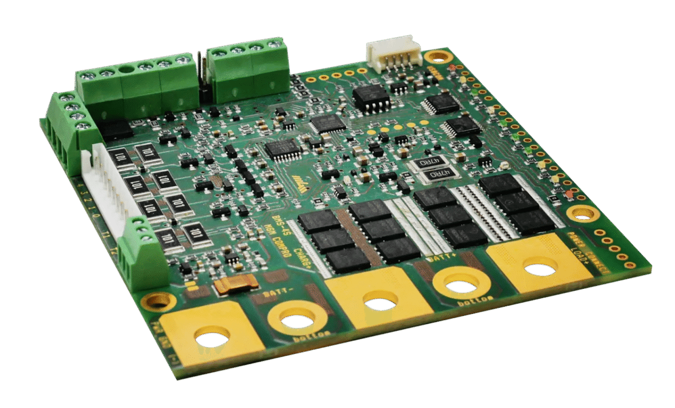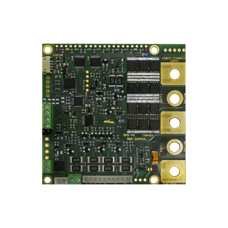The BMS 4i is a battery management system designed for use with LiPol, Li-Ion and LiFePO4 cells, as well as other cells with an operational voltage range of 1.8V to 5V per cell. The BMS 4i protects the batteries and extends their lifetime by measuring their operational temperatures, capacity, and analysing the voltage together with current flow measuring. The BMS 4i controls the energy storage system during charging and discharging cycles. Manages the balancing of each cell, monitors thermal behaviour, communicates with a superior system and contorol system relay and contactors. The BMS 4i can operate with a maximum of 4 cells in series.
